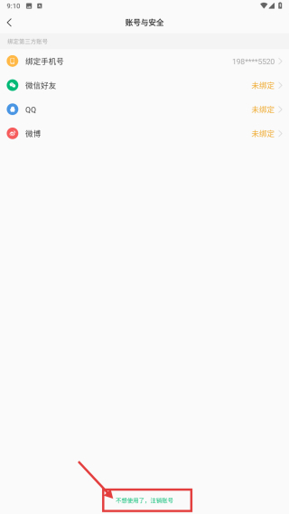 4、在账号与安全页面,点击不想用了,去注销按钮,提交账号注销申请。