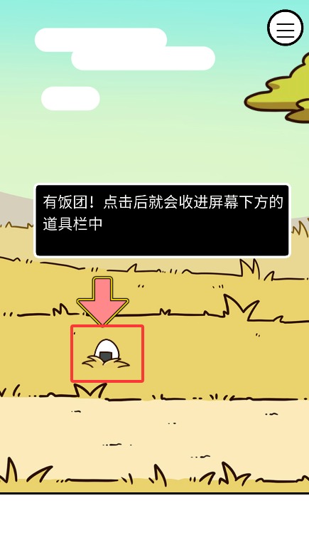 3、发现散落的饭团后自动拾取收集,该生存物资将存入界面底部的道具栏中。