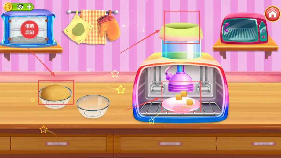 2、包含完整的烘焙流程模拟系统,从食材准备到装饰成品的每个环节都完整呈现,帮助孩子系统了解食品制作知识和安全注意事项。