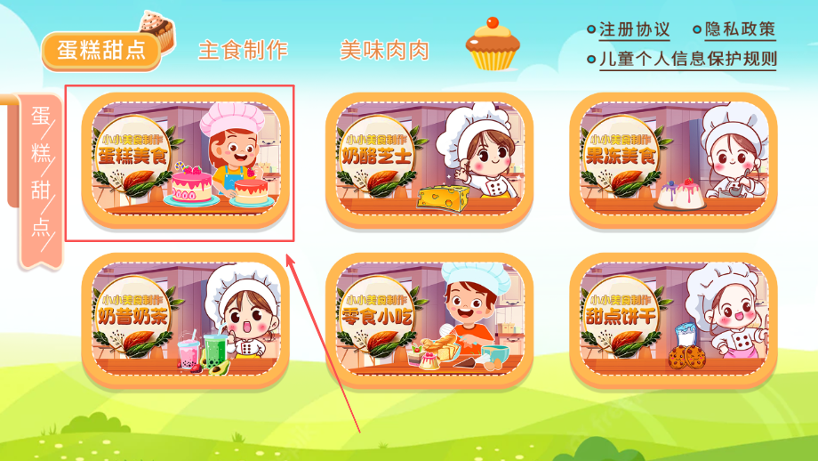 1、采用明亮活泼的色彩搭配和可爱角色设计,营造出欢乐的烘焙氛围,能够有效吸引孩子积极参与制作过程并保持兴趣。