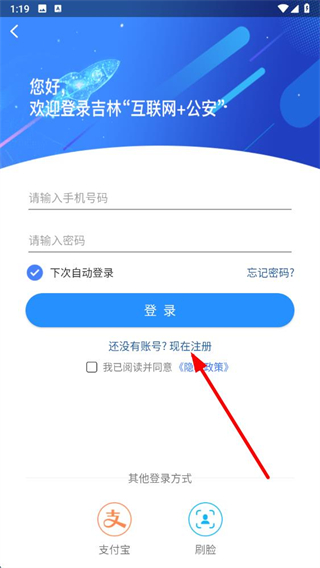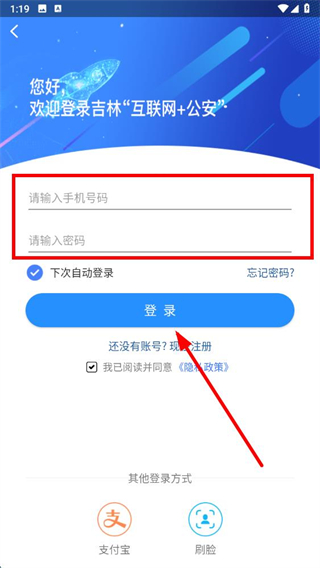 4、注册完成后,返回登录页面,输入手机号码和密码,勾选我已阅读并同意隐私政策,点击登录即可。