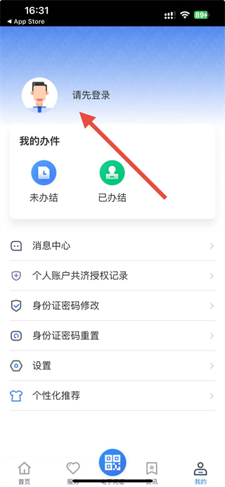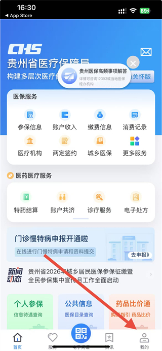 1、打开贵州医保app,点击底部导航栏的我的选项进入个人页面。