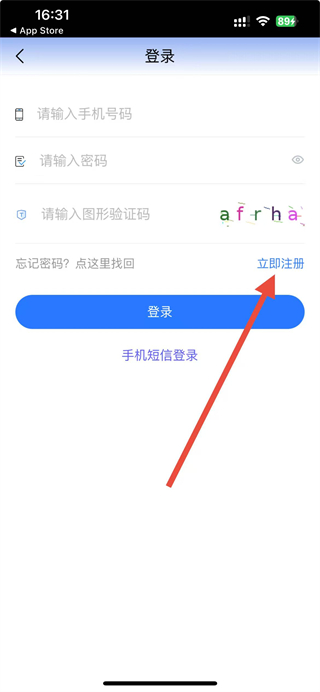 3、在登录页面中,点击立即注册选项进入注册页面。