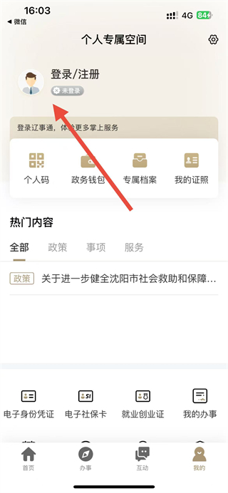 1、打开辽宁医保app,点击底部导航栏的我的选项进入个人专属空间页面。