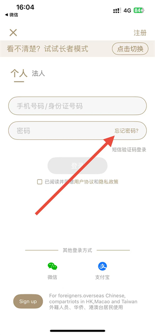 3、在登录页面中,点击忘记密码选项进入忘记密码页面。