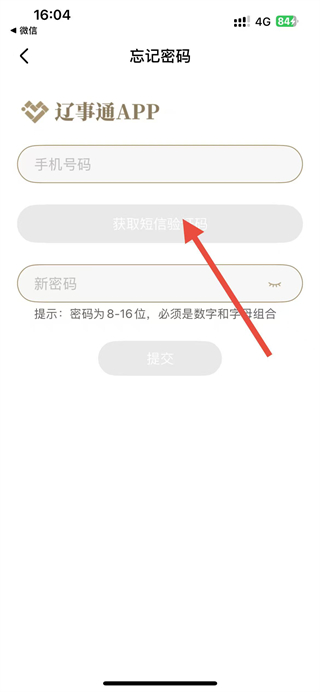 4、在忘记密码页面,输入手机号码,点击获取短信验证码,输入验证码后设置新密码,点击提交即可重置密码。