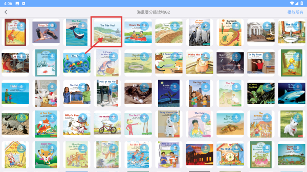 2、在绘本列表中,选择The-Tide-Pool绘本,点击进入阅读页面。