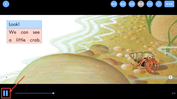 3、在阅读页面,可点击左下角的暂停/播放按钮控制绘本的播放状态。