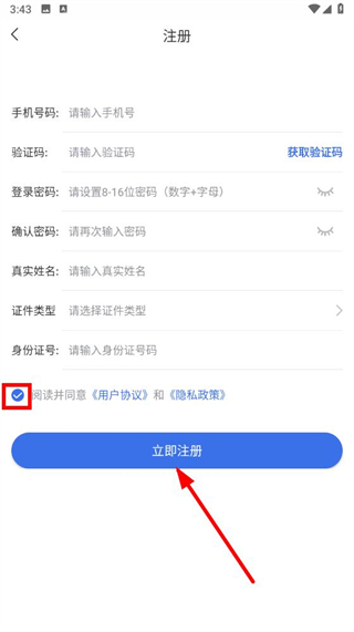 4、勾选我已阅读并同意用户须知和隐私政策的所有内容,点击登录,未注册的手机号验证后即可完成注册。