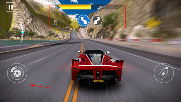 4、左手边的虚拟方向盘控制行驶方向,右侧踏板负责加速和制动。需要变道时手指在屏幕上左右滑动,注意后视镜里其他车辆的动态。