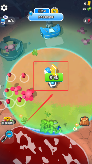 1、游戏初期需要操控火箭飞船上的橙色小人进行矿物开采,收集十五种不同类型的资源,运用智慧将这些材料转化为建设星球的要素。