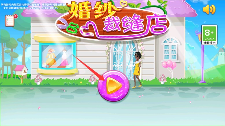 1、启动游戏后点击开始按钮进入,即可进入梦幻唯美的婚纱设计工作室场景界面。