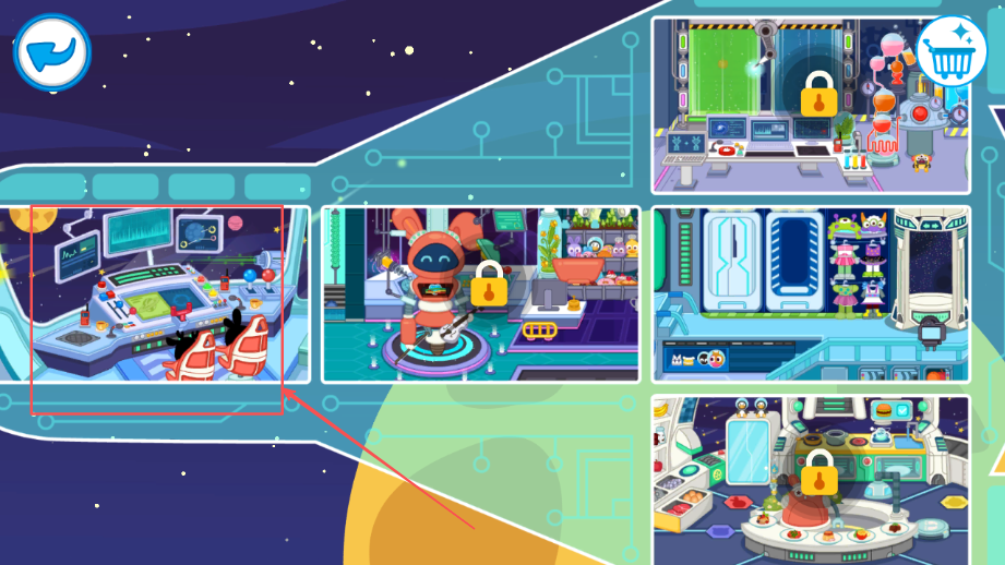2、五个功能各异的飞船场景设计精巧细致,每个区域都有独特的互动内容和小游戏设计等待探索发现。