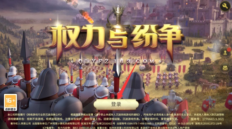 1、启动游戏后点击登录按钮,即可进入这片充满权谋与征伐的史诗级战略世界。