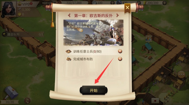 3、点击第一章查看主线任务目标,确认后正式开启城池建设与外交发展历程。