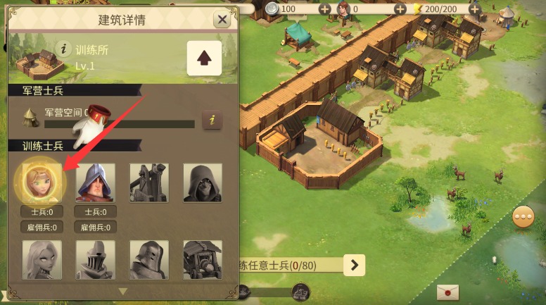 4、选中兵营类建筑展开训练菜单,根据战略需求培养不同兵种的作战单位。