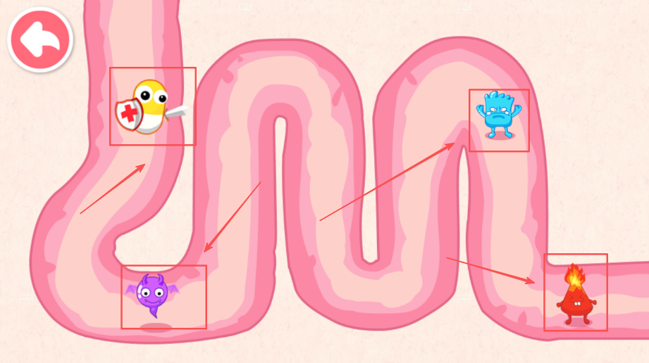 3、游戏场景设计温馨可爱,使用明亮色彩和萌趣角色,有效减轻孩子对医院的负面印象和恐惧心理,创造轻松愉快的学习氛围。