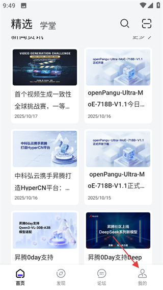 1、进入昇腾社区首页,点击底部我的,进入个人页面。
