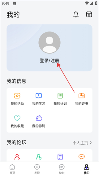 2、在个人页面,点击登录注册,进入登录选择页面。