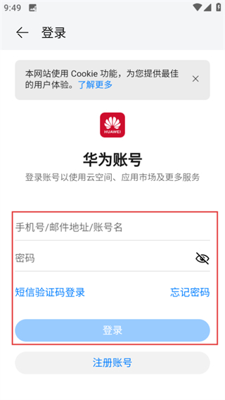 3、在登录选择页面,输入账号和密码后,点击登录,即可完成登录。