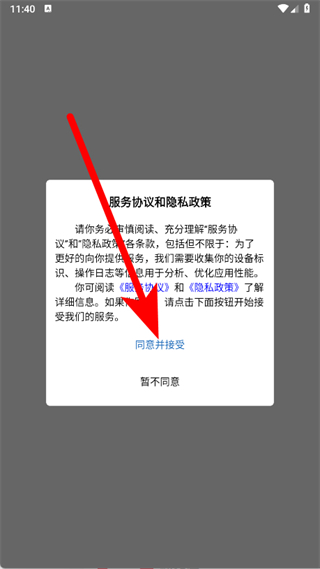 1、打开筑招网,在弹出的服务协议和隐私政策窗口中,点击同意并接受。