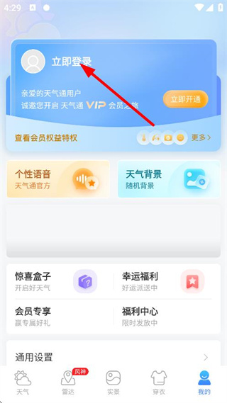 2、在个人中心页面,点击立即登录,进入登录页面。