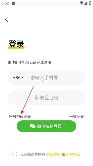 2、在个人页面,点击账号密码登录,进入账号密码登录页面。
