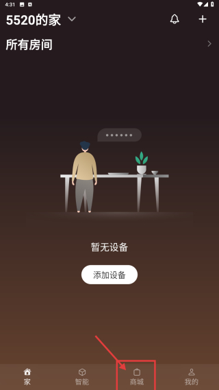 1、打开智能家居应用,点击底部商城选项,进入智家365商城页面。