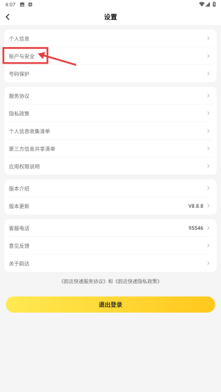3、在设置界面,点击账户与安全选项,进入账户与安全页面。
