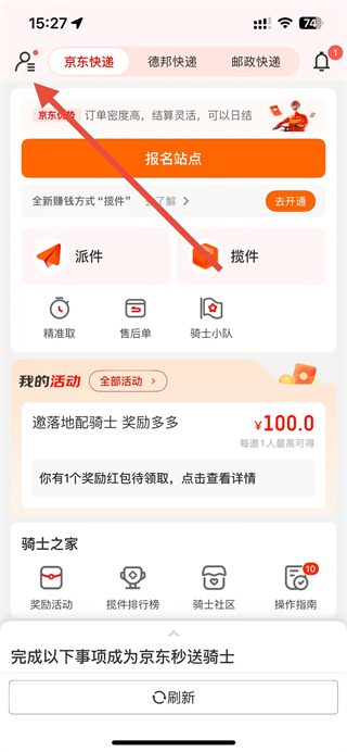 京东秒送骑士怎么切换配送模式