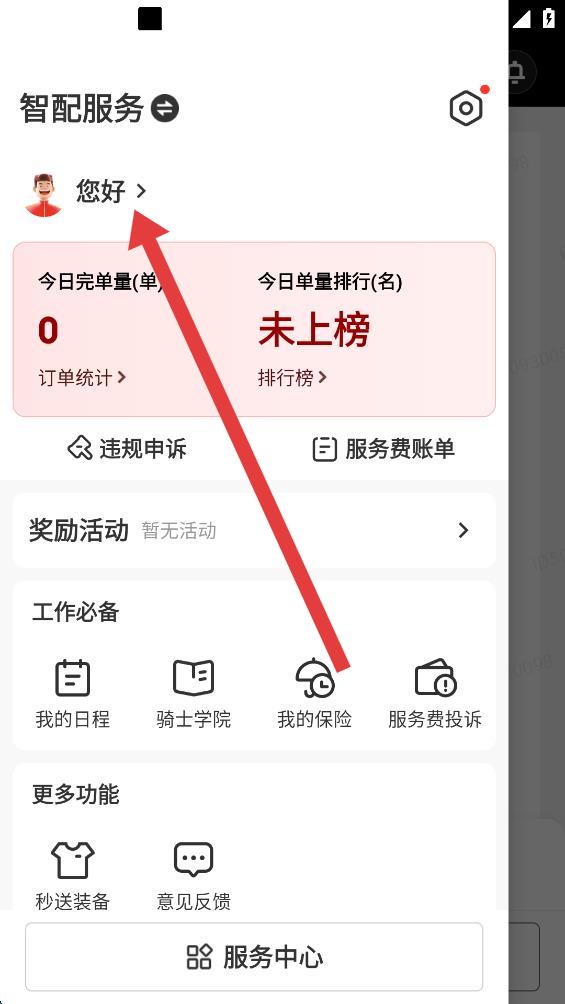 2、在侧边栏界面中,点击头像区域,进入个人中心页面。