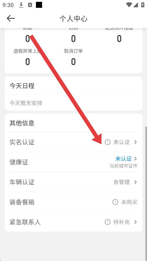 3、在个人中心页面下滑找到实名认证选项,点击其右侧的未认证按钮。