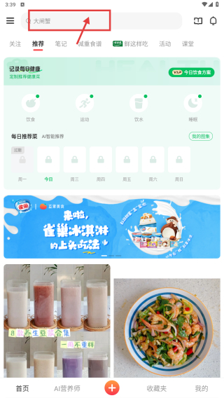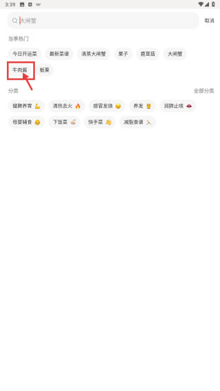 1、打开美食类应用,在顶部搜索栏输入大闸蟹,进入搜索结果页面。