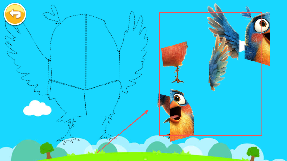 1、通过拖拽拼图碎片完成动物图像组合,锻炼手眼协调能力和观察力,培养耐心和专注力,提升空间想象能力。