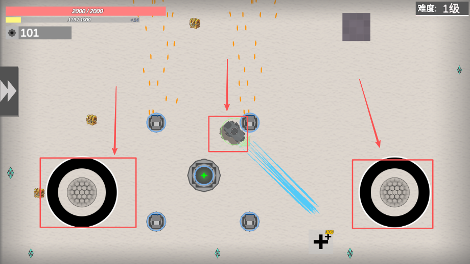 3、击败敌人后,及时拾取其掉落的道具,这些道具既能强化自身属性,也能用于升级武器等级,进一步提升战车实力。