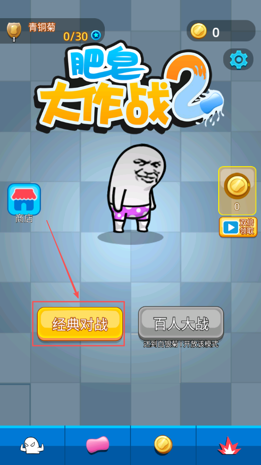 1、打开肥皂大作战2联机版,进入主界面后点击联机模式选项,选择想参与的对战类型,比如十人大战或百人混战。