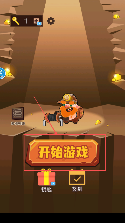 1、打开黄金矿工单机,进入游戏主界面后,点击开始游戏选项,选择想要挑战的初始关卡。