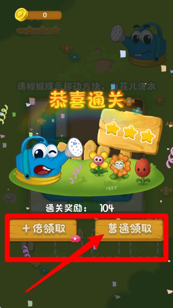 3.通关奖励:成功完成关卡后可解锁奖励,玩家可以选择普通领取或十倍领取,增加更多金币与成长资源。