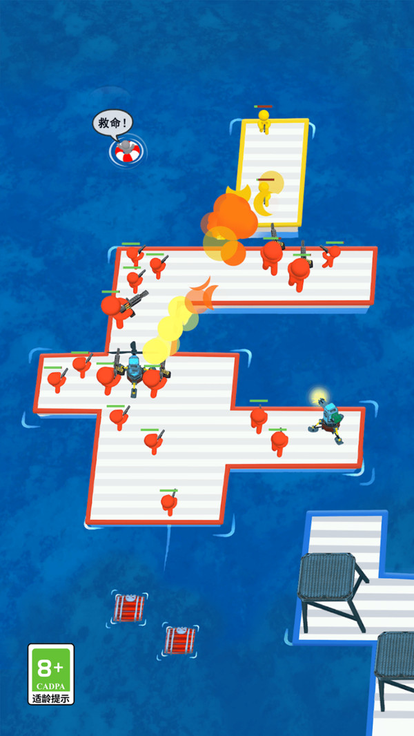 海域生存战让玩家从一个小方块启程,在广阔的海面上漂流探索,不断收集漂浮的方块和伙伴扩展岛屿,逐渐壮大势力。随着岛屿的发展,可以解锁更多技能与资源,体验建造与策略的双重乐趣。战斗部分同样紧张刺激,需要灵活操作枪械和利用地形迎战强敌。