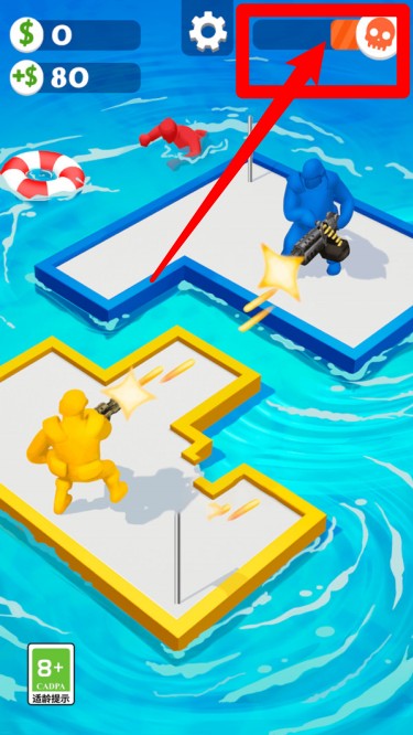 2.战斗进度:界面右上角的进度条显示当前战斗状态,随着战斗推进逐步填充,玩家能直观了解对局进展与胜利目标。