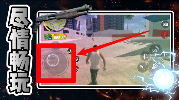 1.左下角虚拟摇杆帮助玩家操控角色移动,结合场景探索地图,自由体验都市世界的独特冒险。