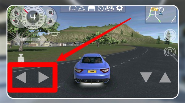 2.自由驰骋道路:操控左下方方向键精准转向,在广阔的赛道中尽情漂移加速,释放速度激情,感受极致驾驶快感。