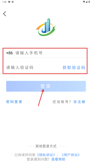 3、在登录方式选择界面,选择验证码登录,进入验证码登录页面。