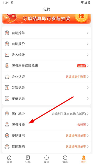 2、在个人页面点击服务技能选项,进入服务技能选择页面。