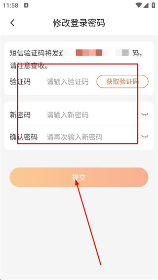 4、根据要求填写信息,点击提交,即可完成密码修改。