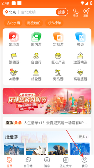 1、打开中青遨游旅行,点击页面右下角我的,可进入个人相关页面。