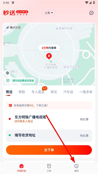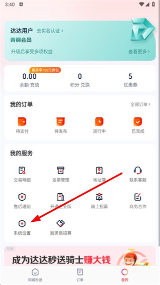 1、打开达达秒送app,点击右下角我的选项,进入个人页面。