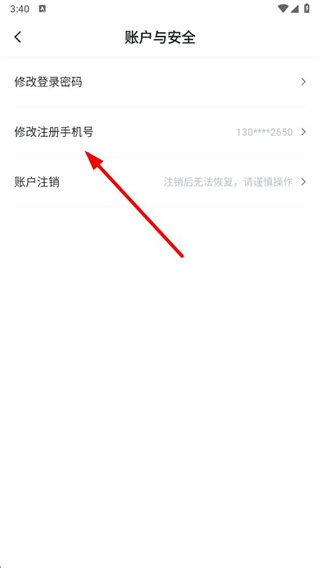 4、在账户与安全页面点击修改注册手机号选项,按照提示完成手机号修改即可。