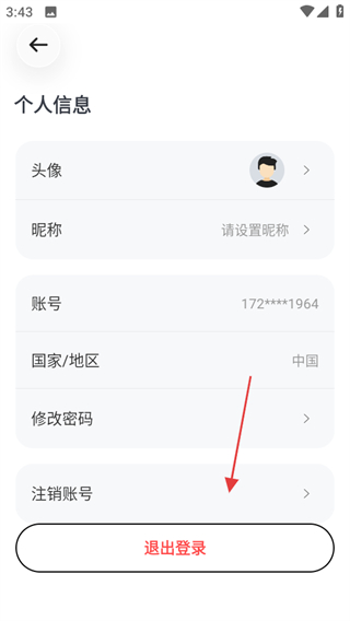 3、在个人信息页面,点击注销账号可进入注销账号确认页面。