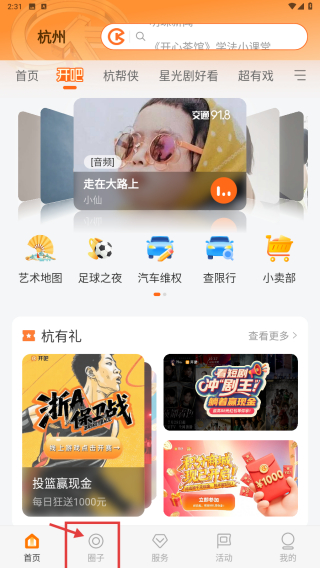 1、打开本地社交应用,点击底部圈子选项,进入吧友圈页面。